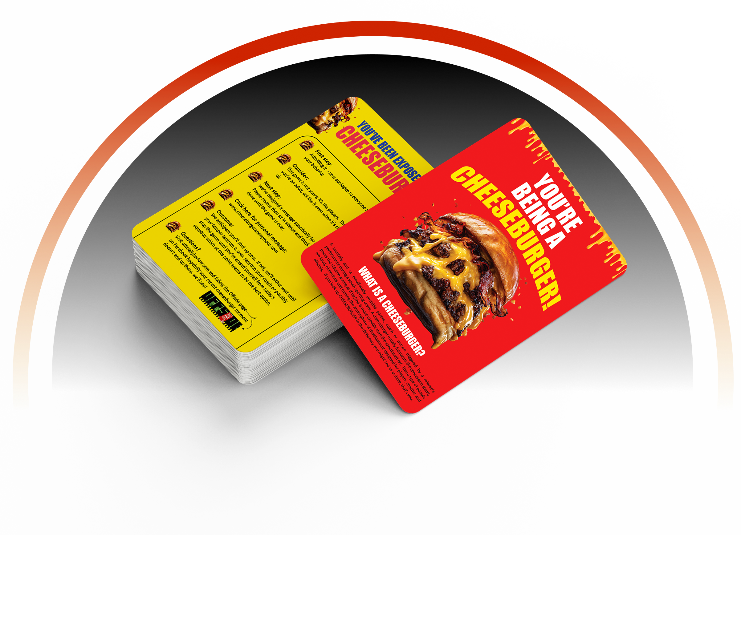 Get your pack of 50 professionally printed Cheeseburger cards for just $49
